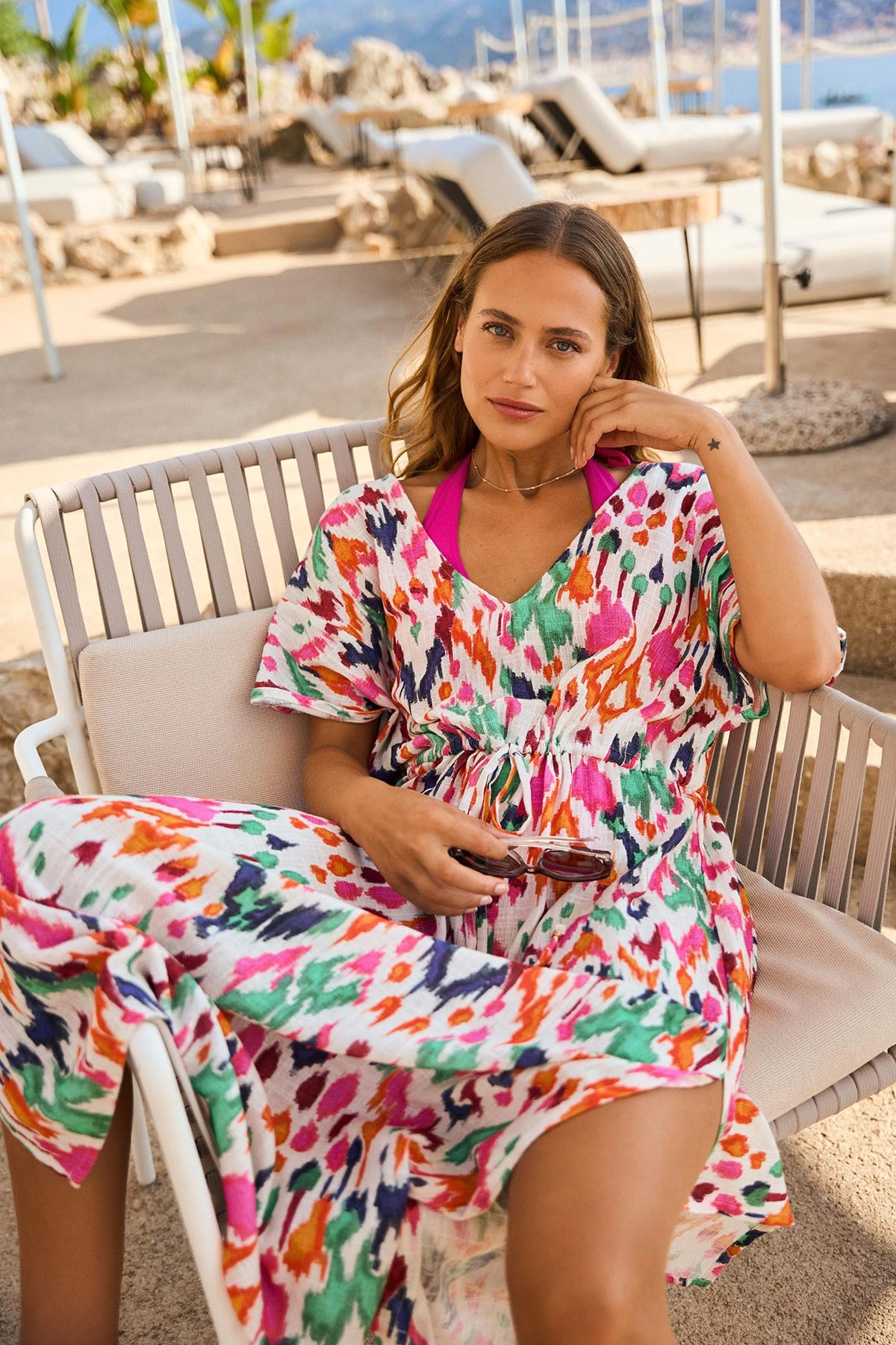 · Coloris écru à motifs colorés